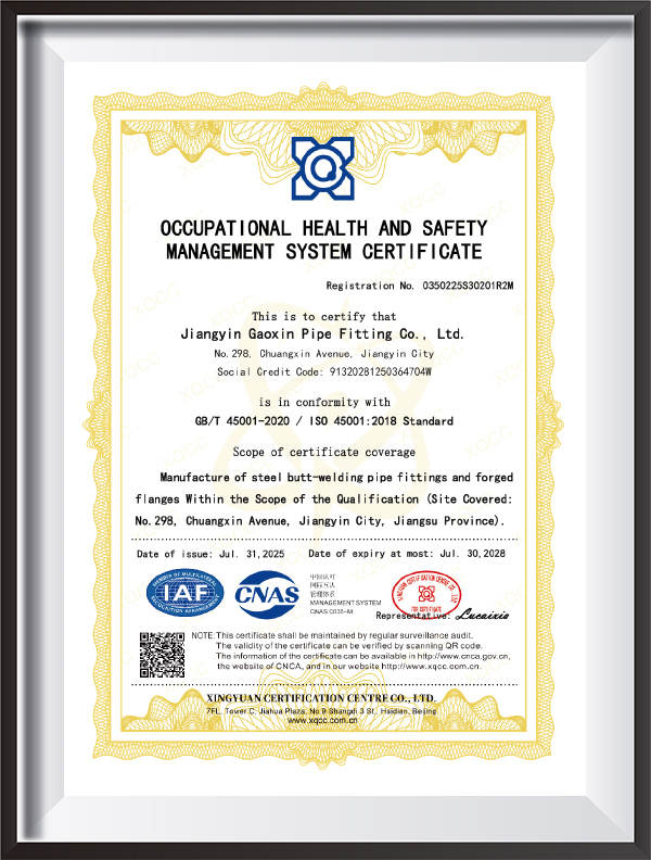 ASME B16.9, GB/T12459, EN10253,JIS B2311,DIN2615,ANSI,GOST vb. uluslararası ve endüstri standartlarına uyun ve özelleştirilmiş üretimi destekleyin.